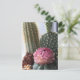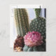 A bright pink flowering cactus pops out of this postcard, featuring bible verse Romans 8:37.