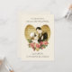 Beautiful unique invitations for a 1920's Themed or Vintage style Wedding. Image of a 1920's bride and groom about to kiss. The happy couple are within a heart made of a vintage paper collage and a garland of pink roses finishes off this romantic picture. This vintage wedding invitation has a cream background, reminiscent of antique lace. Each comes complete with a white envelope. Easily customisable for you to add your own details.