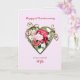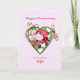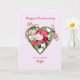 A very romantic and elegant 2nd wedding anniversary card. A beautiful card to give to your wife. A golden heart holding a bouquet of painted roses.