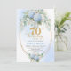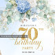 Romantic 70th Birthday Blue Floral Gold Invitation