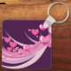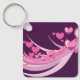 Romantic Abstract Pink Hearts Design On Purple Key Ring