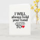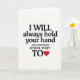 This charming card delivers a message of love with both sincerity and humor. Set against a bright white background, bold black lettering states, “I WILL always hold your hand,” creating a strong promise of care and commitment. Beneath it, the phrase “AND SOMETIMES OTHER STUFF” appears in a slightly smaller but still confident font, adding a lighthearted twist. The message ends with the word “TO” placed beside a bright red heart, bringing warmth and affection to the design. The contrast of black text and red heart keeps the focus clear and expressive. This card balances devotion and humor, making it a sweet and memorable way to share Valentine’s Day love. 💌🍫