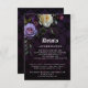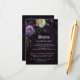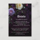 Romantic and moody, this formal wedding details card is perfect for a sophisticated modern wedding. The moody floral design features a natural bouquet of purple and lavender flowers with a white rose on a dark purple and black lace background.