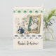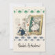 Romantic couple printed artwork wedding invitation in green and blue antique style. You can personalise the text!