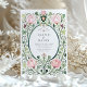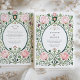 Announce your union with this exceptionally beautiful Art Nouveau-inspired wedding invitation. A masterpiece of vintage elegance, the design features a perfectly symmetrical floral frame with lush, soft pink peonies in full bloom. The flowers are brought to life with a delicate watercolor effect, creating a sense of timeless romance. Graceful, swirling vines in shades of sage and hunter green are interspersed with charming heart-shaped leaves, adding a touch of whimsy. A dark green oval elegantly frames your wedding details, which are presented in a classic serif and romantic script font, fully customisable to your personal information. This invitation is ideal for a couple seeking an artistic, romantic, and unforgettable stationery suite for their garden, vintage, or fairytale-themed celebration.