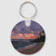 The fading sunlight creating beautiful pink and orange hues in the sky, making silhouettes of the palm trees and highlighting the gentle surf. Tranquil beach scene.