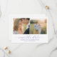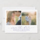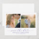 This wedding save the date design features a split layout with two photos, creating a balanced and intimate composition. The colour palette is soft and warm, dominated by natural tones of beige, light blue, and green, evoking a serene and romantic atmosphere. Digital photography captures candid moments enhanced by a gentle filter, while elegant script and serif typography add sophistication to the announcement. Floral motifs subtly appear in the clothing, suggesting a theme of nature and elegance, perfect for celebrating love and joy on your special day.