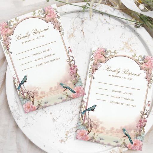 Romantic Birds Blush Pink Floral Muslim Wedding Invitation