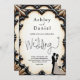 This elegant black-and-white wedding invitation is perfect for a modern wedding. The simple design features elegant black calligraphy, a chic black frame, and a bride and groom illustration on a clean white background. The invitation card includes the wedding details on the back instead of paying for a separate enclosure card.