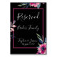 Pretty black and bright pink floral table number for your reception tables. Reserved for Bride’s Family.