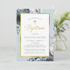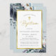 Romantic Blue Floral and Gold Script Baptism Invitation