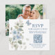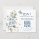 Romantic Blue Floral RSVP QR Code Photo Wedding Card