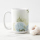 romantic blue flowers with pretty green leaves botanical coffee mug.