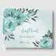 romantic blue flowers & green leaves wedding guest book