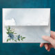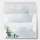 Gorgeous blue watercolor botanical wedding envelope featuring beautiful blue shades and white flowers with green leaves