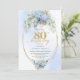 Romantic Blue Hydrangea Gold Floral 80th Birthday Invitation