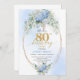 Romantic Blue Hydrangea Gold Floral 80th Birthday Invitation