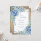 This romantic wedding design features soft watercolor hydrangeas in dusty blue tones, elegantly arranged on a rustic textured background. Delicate botanical details and classic typography create a timeless and charming look, ideal for countryside or garden weddings. Customisable wedding details and your monogram adds a personal, elegant touch.
