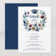 Romantic Blue Shades Floral Wreath Graduation Invitation