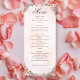 Add a touch of romance to your wedding reception with this blush pink floral wedding menu card. Featuring soft watercolor florals in shades of blush, peach, and green, this elegant design beautifully showcases your wedding meal details.
