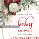Romantic Boho Burgundy Eucalyptus Gold Baby Shower Invitation