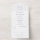 Our All-In-One Wedding Invitations encapsulate your love story in one elegant package. Featuring a romantic botanical crest in dreamy blues, these invitations unfold to reveal all the details of your enchanting, traditional wedding.