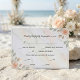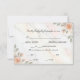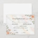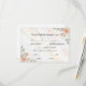 Set the tone for your special day with these elegant reply cards, featuring soft blooms and sophisticated typography perfect for a romantic spring celebration.This design features a delicate watercolor illustration of peach roses and soft pink buds paired with sage green foliage, set against a printed faux white marble background. The typography combines a flowing black calligraphy script for the headers with a clean, classic serif font for the details, framed by a simple black line border. The color palette utilizes soft pastels, cream, and stone grey to create a formal yet airy aesthetic. This is a flat printed image with a faux marble effect, not actual raised stone or texture.