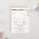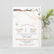 Soft, romantic, and eclectic this wedding invitation offers a branch draped in gauzy pale butterscotch material with tiny mason jar lights strung from the branch. The fonts are a mix of modern and calligraphy in medium grey and butterscotch.