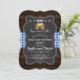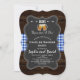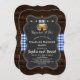 Romantic BREWS Before Their "I Do's" card design featuring a chalkboard shape on an old barn background with blue gingham. Use Customize tool to add your info. For more, visit please, my I DO BBQ Chalkboard/Barn and Gingham collection.