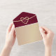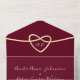 Elevate your wedding announcement with our elegant romantic burgundy all-in-one invitation, marrying modern minimalism with timeless sophistication. Adorned with a gleaming chic gold rope heart containing the monogram initials of the bride and groom, and complemented by simple calligraphy script. Customise with a cherished photo of the couple on the back, and include your website and QR code for easy RSVP and additional information. It's the perfect blend of style and personalisation for your special day.