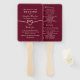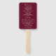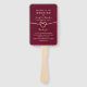 Modern, minimalist, elegant, simple calligraphy red burgundy wedding program hand fans with gold rope heart.