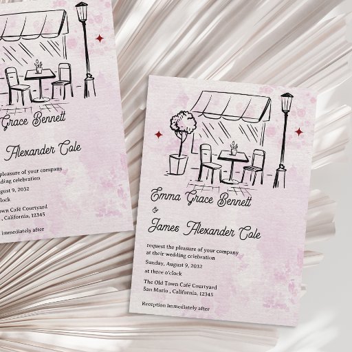 Romantic Pink Café Sketch Wedding Stationery SuiteDesigned by Mypaperlove Designs