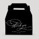 This romantic calligraphy dark black thank you wedding favour box is perfect for a simple wedding reception. The modern classic design features fancy swirls and whimsical flourishes with gorgeous elegant hand lettered typography. Personalise the boxes with your names, the event (if applicable), and the date. These favour boxes can be used for a wedding reception, bridal shower, or any event!
