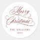 Romantic Calligraphy Merry Christmas Red & White Classic Round Sticker