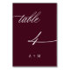 Romantic Calligraphy Wedding Number 4, Burgundy Table Number