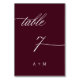Romantic Calligraphy Wedding Number 7, Burgundy Table Number
