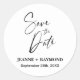 Romantic Calligraphy Wedding Save the Date Custom Classic Round Sticker