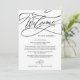 These romantic calligraphy welcome letter & itinerary cards are perfect for a simple wedding. The modern classic design features fancy swirls and whimsical flourishes with gorgeous elegant hand lettered typography. The front of the card features a welcome letter and the back of the card features the wedding itinerary. These notes are perfect for destination weddings and hotel guest welcome bags.
