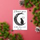 This charming card captures the essence of romance through its minimalist design, featuring a sleek silhouette of a contemplative cat perched upon a crescent moon. The moon itself is adorned with delicate swirls, hearts, and stars, creating a dreamy atmosphere that beckons the viewer to gaze a little longer. The use of a monochrome palette with subtle shades enhances the silhouette, making this an elegant choice for a lover of simplicity and feline grace.