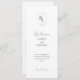Elegant and stylish. This lovely and unique wedding program features couple initials monogrammed with a soft floral green frame, a welcome message at the front and full program at the back. A contemporary set of fonts in a chic dark forest green sets a modern yet elegant tone. The template includes a white background both back and front. Variations of this stylish template is available in the same collection.