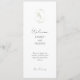 Elegant and stylish. This lovely and unique wedding program features couple initials monogrammed with a soft floral green font & frame, a welcome message at the front and full program at the back. A contemporary set of fonts in a chic dark forest green sets a modern yet elegant tone. The template includes a white background both back and front. Variations of this stylish template is available in the same collection.