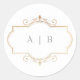 romantic classic gold monogram sage green wedding round sticker