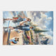 This enchanting coastal scene captures a dreamy sunset stroll along a golden shoreline, where soft waves kiss the sand and warm light dances across the water. A stylish couple walks hand in hand beside a fluffy companion, their silhouettes glowing against a pastel sky brushed with blush, apricot, and powder blue clouds. In the distance, a graceful sailboat drifts peacefully, while a grand seaside cottage rests atop a flower-lined bluff, surrounded by lush greenery and blooming garden paths. The entire composition feels like a modern cottagecore daydream infused with cozy coastal charm and a hint of boho romance. Gentle reflections shimmer in the wet sand, creating a luminous, painterly aesthetic that feels both whimsical and serene. This artwork blends soft realism with a storybook atmosphere, evoking feelings of love, tranquility, and slow living by the sea. Perfect for anyone drawn to romantic beach vibes, elegant seaside homes, and sunset wanderlust. AI generated artwork.