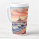 Romantic Coastal Sunset Lighthouse Walk Latte Mug