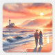 Romantic Coastal Sunset Lighthouse Walk Square Sticker
