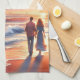 Romantic Coastal Sunset Lighthouse Walk Tea Towel