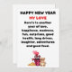 Since it is almost New Year's eve, I was thinking of what New Years gift should I give to the love of my life and stumbled upon the thought of designing a cute romantic meaningful New Year card which would make him/her feel special. This is a simple yet elegant New year card which more or less contains a list of things that me and my partner would look forward to in the next year. I hope you and your partner like these New Years gifts and have an amazing year ahead. Can be given as a gift to Husband, Wife, Boyfriend, Girlfriend, Fiancé or Fiance, Fiancée.