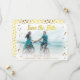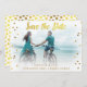 Personalised large photo wedding save the date invitation with beautiful faux gold foil confetti graphic images on the sides of the invite. Fun modern save the date fixed brush script font text in faux gold foil, and customisable gold text below and a semi transparent romantic soft white overlay border. The back of the invite has a pretty faux gold foil polka dots pattern on a white background. If you need any assistance customising your product please contact me via my store and I will be happy to help. PLEASE NOTE: These are flat printed graphic images - not real gold foil.