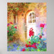 Romantic red roses on the doorstep of an old English country style cottage garden in the summer.