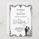 This elegant black-and-white wedding invitation is perfect for a modern wedding. The simple design features elegant black calligraphy, a chic black frame, and a bride and groom illustration on a clean white background. The invitation card includes the wedding details on the back instead of paying for a separate enclosure card.